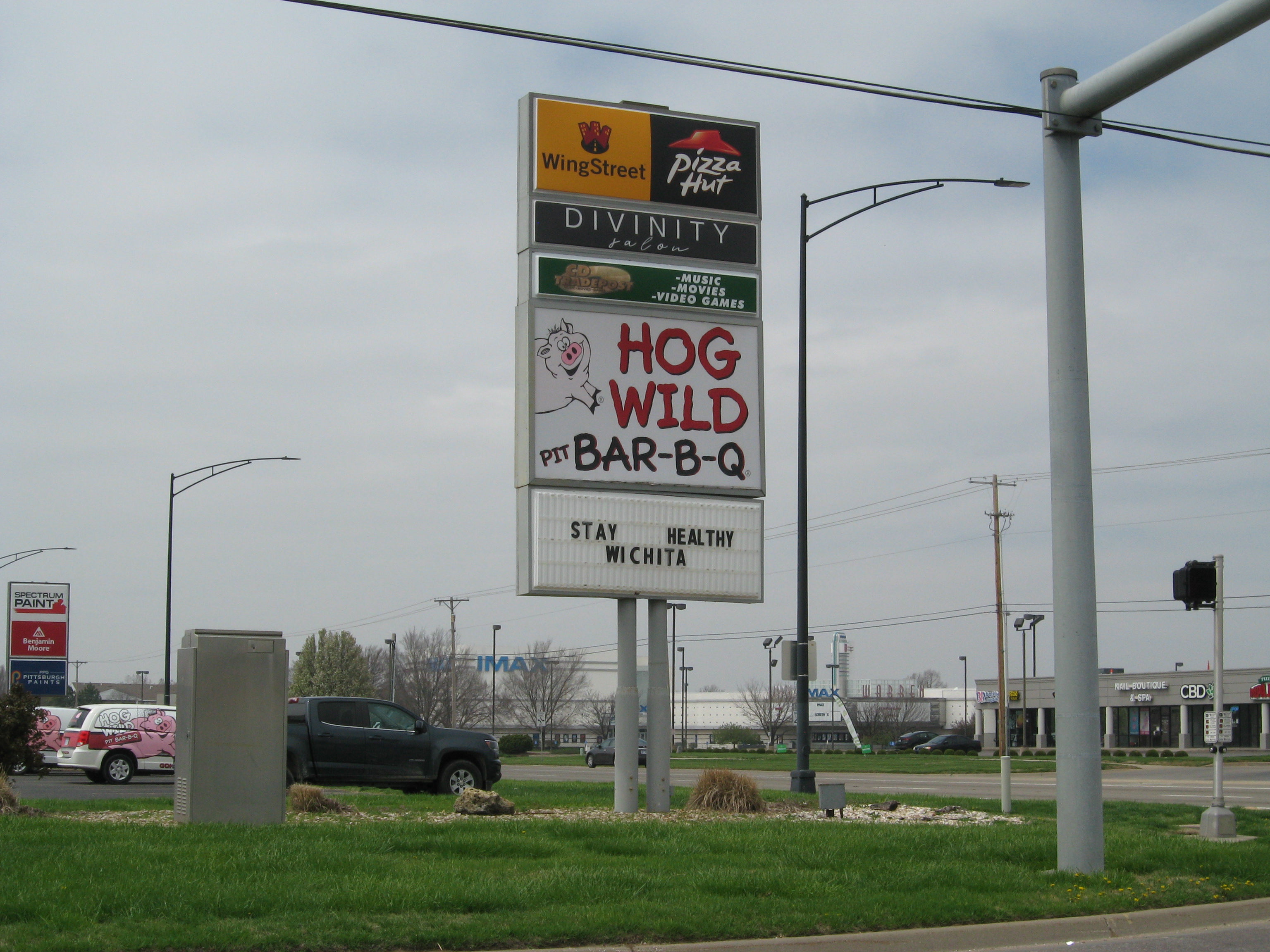 A shopping center marquee wishing passersby good health as COVID-19 makes its way to Wichita.