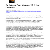 Dr. Anthony Fauci Gives Graduation Address to UC Irvine Linked Data Interactive Resource