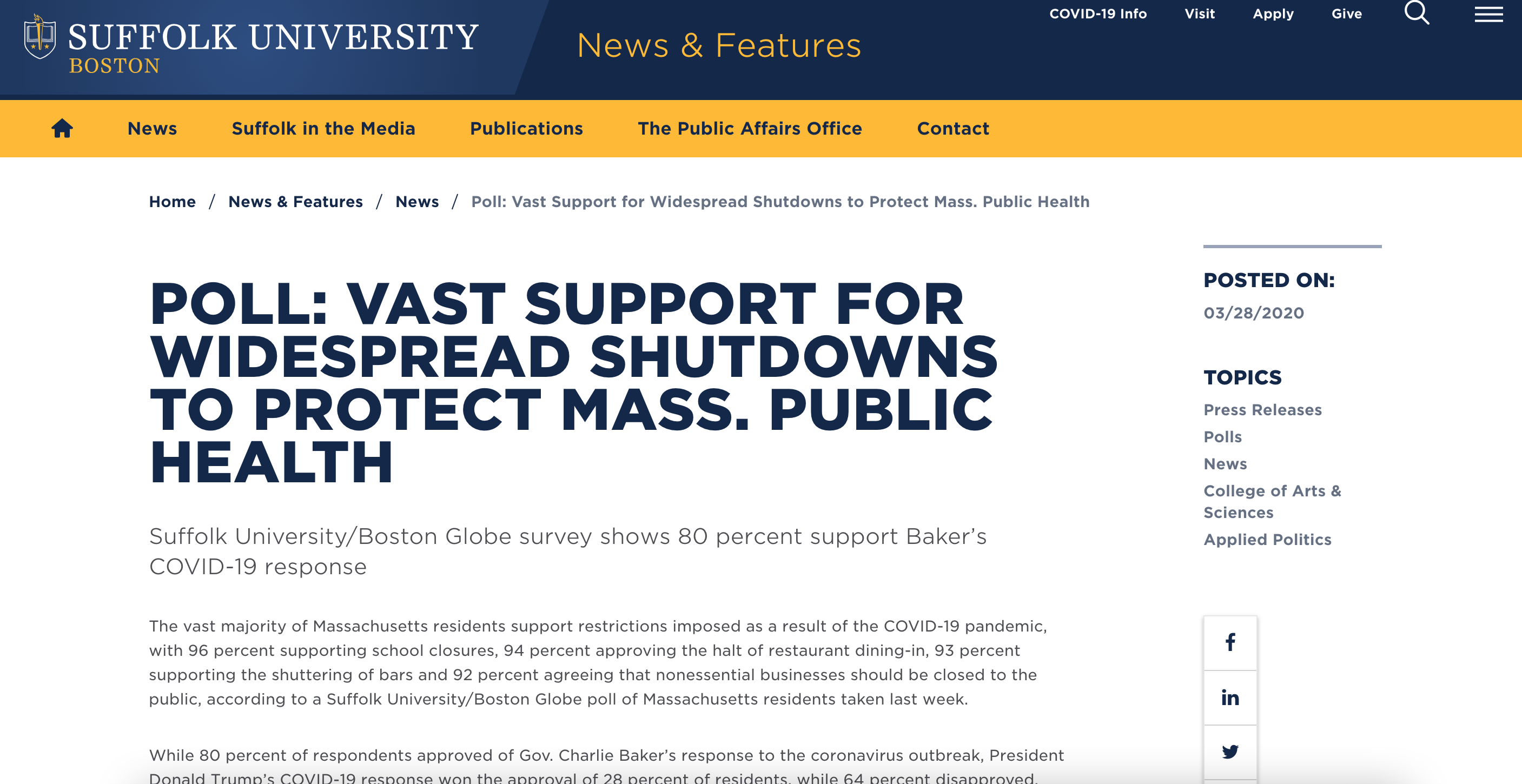 Poll: Vast Support for Widespread Shutdowns to Protect Mass. Public Health, press release