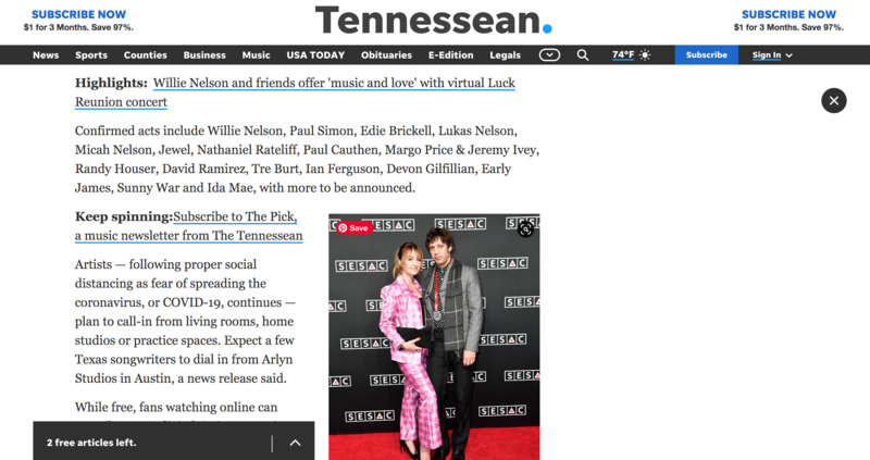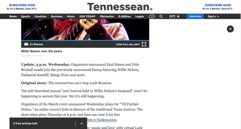 The Tennessean Newspaper online covers the "Luck Reunion" concert