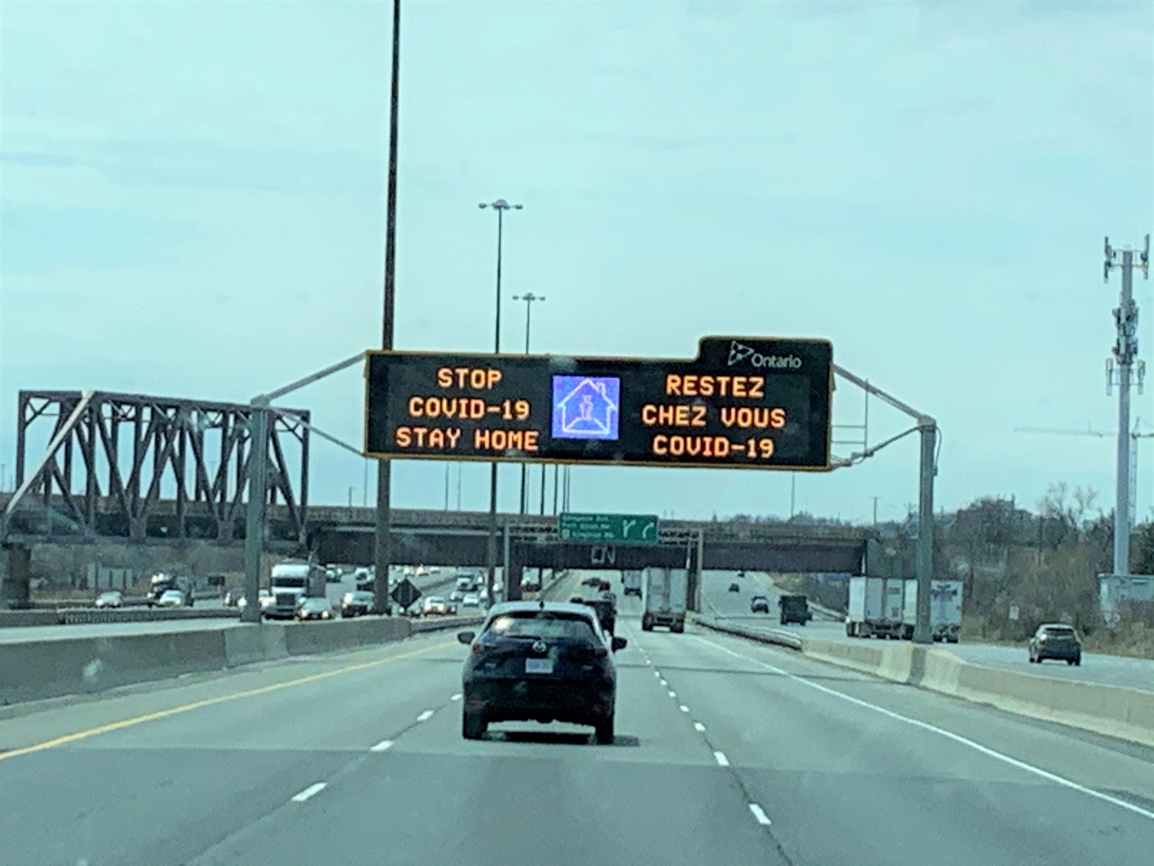 Ontario Electronic Road Signs Urging Motorists to Stay Home 1