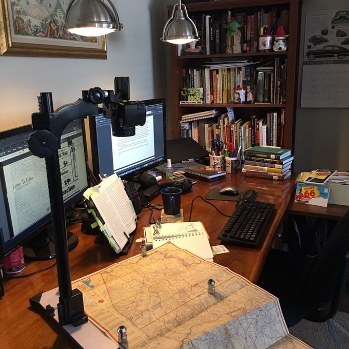 A PhD student from Arizona State University's School of Historical, Philosophical and Religious Studies sharing their home workspace. Most ASU employees are working from home during the pandemic.