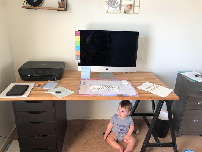 A staff member from Arizona State University's School of Historical, Philosophical and Religious Studies sharing their home workspace. Most ASU employees are working from home during the pandemic.
