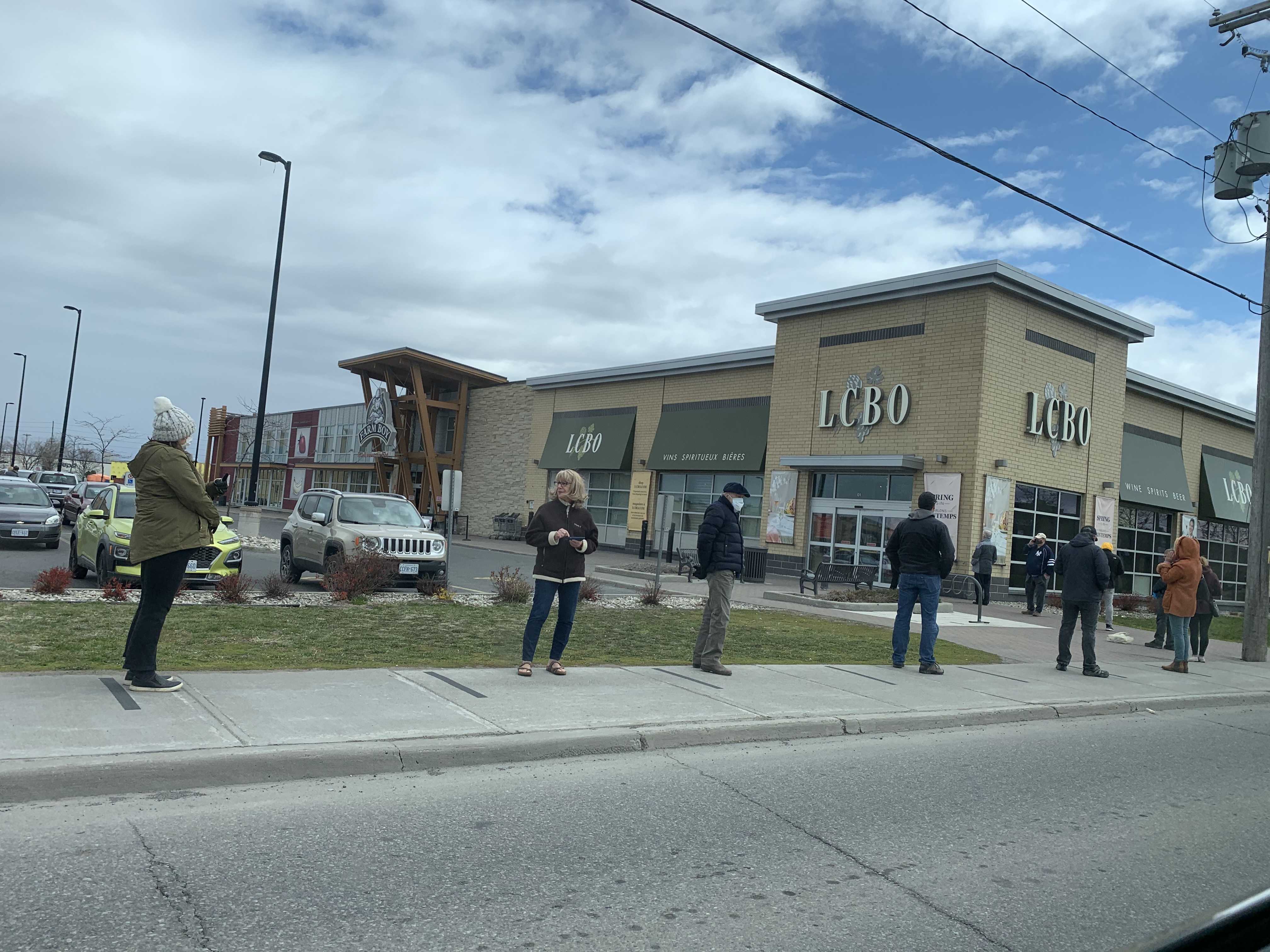 Physically Distanced Line-up outside LCBO (Liquor Control Board of Ontario)