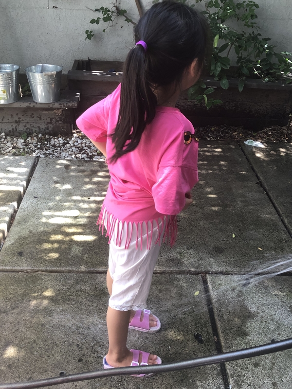 This is a picture of my young sister. I am helping her to wash her hands, feet, and her legs before she go into the house.