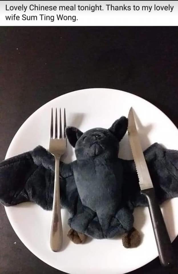 This image was a part of a Facebook post. It is evidently racist and indicates an underlying suspicion of the ‘Chinese’ community which has arisen out of the Covid-19 pandemic. Discussion of the cause of the Covid-19 outbreak, particularly regarding its supposed origins in a wet market, has contributed to a growth in anti-Chinese sentiment and ethnocentric thought in Tasmania. The image depicts a toy bat on a plate, with the caption describing it as a ‘Chinese meal’. This refers to the belief that bats are commonly eaten in China and that such practices caused the Covid-19 outbreak. The last line of the post is also evidently racist, with the name ‘Sum Ting Wong’ often being derogatively used by racist individuals to refer to Chinese and other ‘Asian’ people in Australia. It must be noted, however, that not all Tasmanians believe such horrid tropes. I immediately was horrified when I saw this post, and others I have showed it to have reacted in disgust. Nevertheless, it sadly still represents a faction of the community who have reacted to Covid-19 with suspicion and racism. From my personal experience, I feel as though this racism has reduced to some degree in the community, as the virus has spread throughout the world and beyond China.