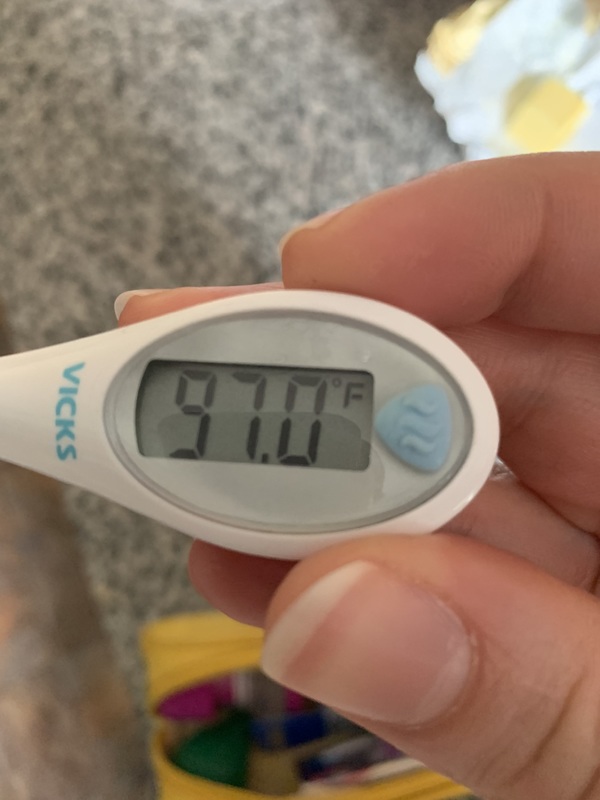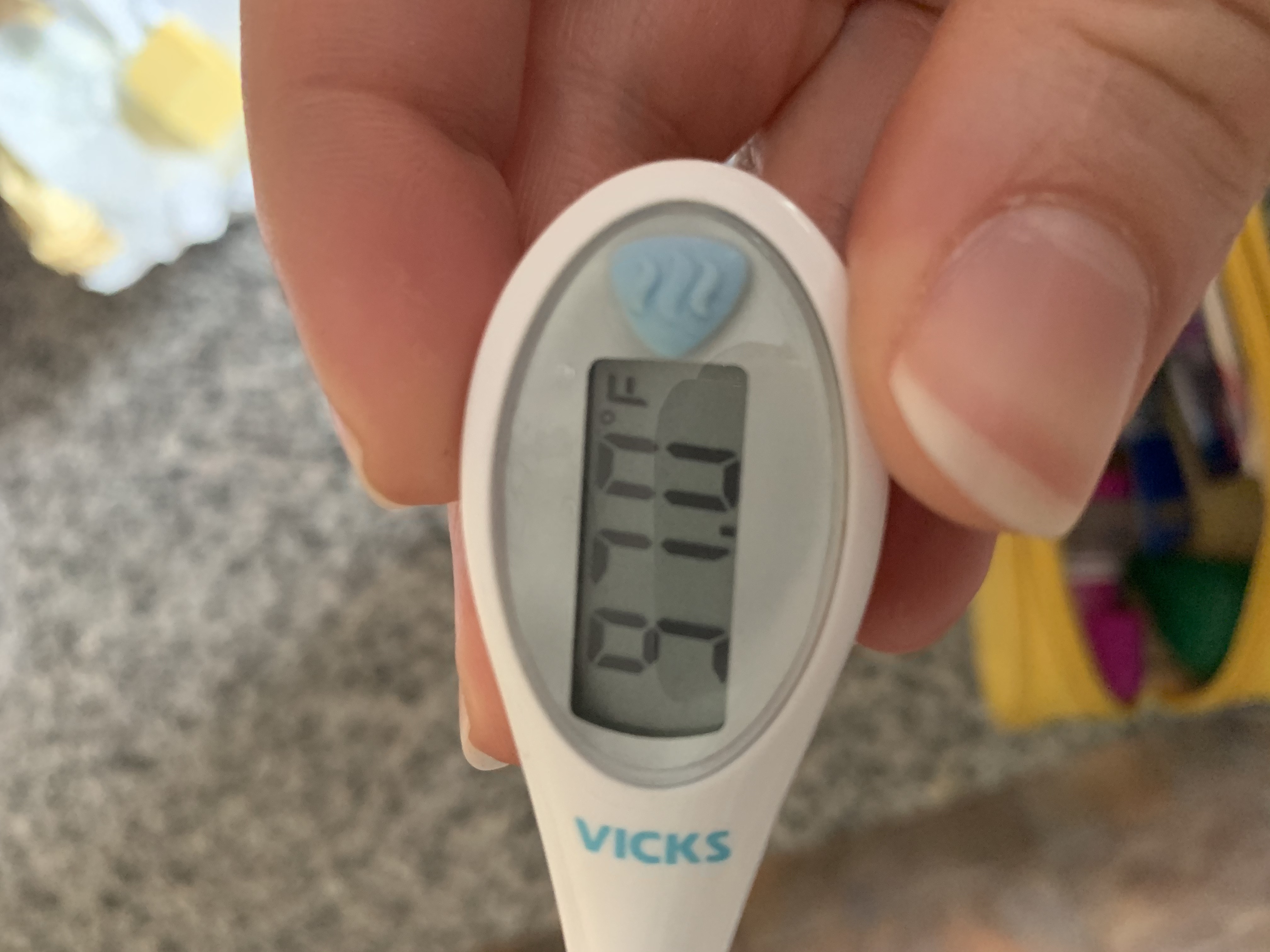 The Hershey Company started having me work from home on March 17, 2020. I am a baker for the Hershey Company's baking products test kitchen. Since March I have been baking and working on recipes from home. In order to re-enter the building, I was required to take my temperature at home, photograph it, and present that photo to the security officer on duty. On April 7, 2020 I took a photograph of my temperature before leaving my house to restock my baking supplies from the test kitchen pantry. I presented this photo to security before filling out a health declaration form and signing into the building. Once I had been fully checked in I was able to collect the supplies I needed before signing out of the building. Since March 17th, I have only had to return to my work area twice to restock. Now Hershey has temperature check points that operate during specific windows of time and no longer requires employees to photograph their temperature. In this way, the Hershey Company has been able to accurately track employees in and out of the buildings in order to keep employees safe.