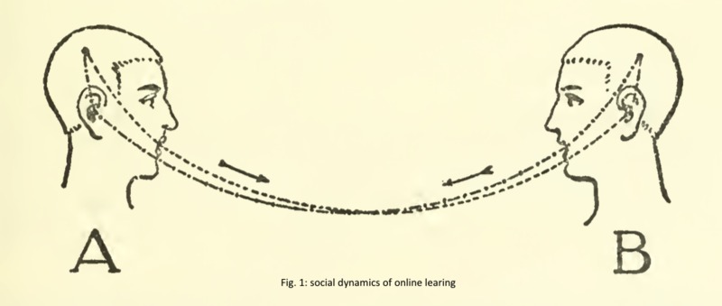 This is a model of the social dynamics of online learning, especially human interaction via Zoom meetings. This is a common model adopted by the university. Notice how smoothly inputs are converted into outputs, thus pointing the efficiency and productivity of the overall system. As university administration have shown, the success of this model (for capital gains) can be shown in its applicability to all aspects of teaching and learning. It should also be said that a pandemic presents great opportunity for more intensive technologisation/bureaucratisation of all aspects of human life, and the extent to which communication and exchange of information can be ordered into narrow channels of utility and efficiency.