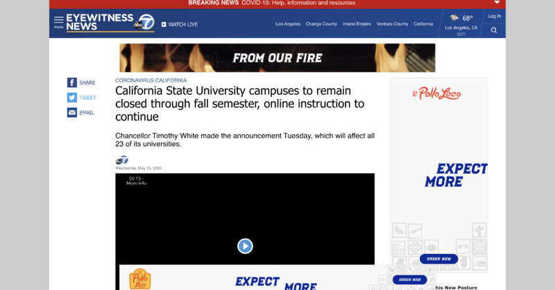 California State University campuses to remain closed through fall semester, online instruction to continue