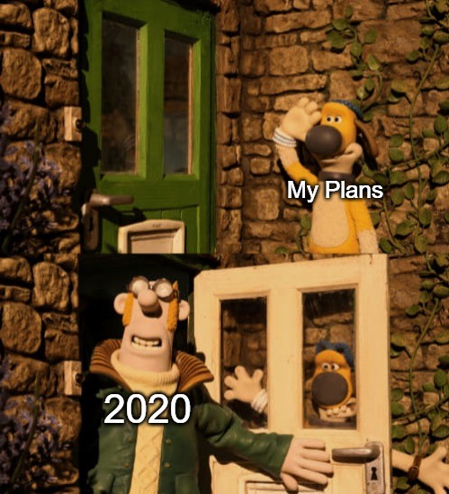A meme I created and posted on a Facebook group, on the topic of the year 2020. Comprised of two images taken from the opening sequence of "Shaun the Sheep", demonstrating how my plans for the year have been ruined by 2020. It summarises my feelings that all the events of the year has ruined all the plans I had, and that it has not been a great year.