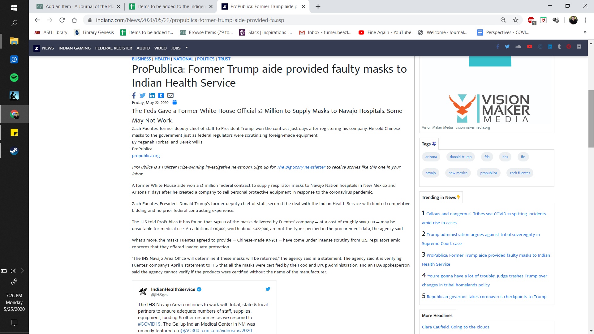 ProPublica: Former Trump aide provided faulty masks to Indian Health Service