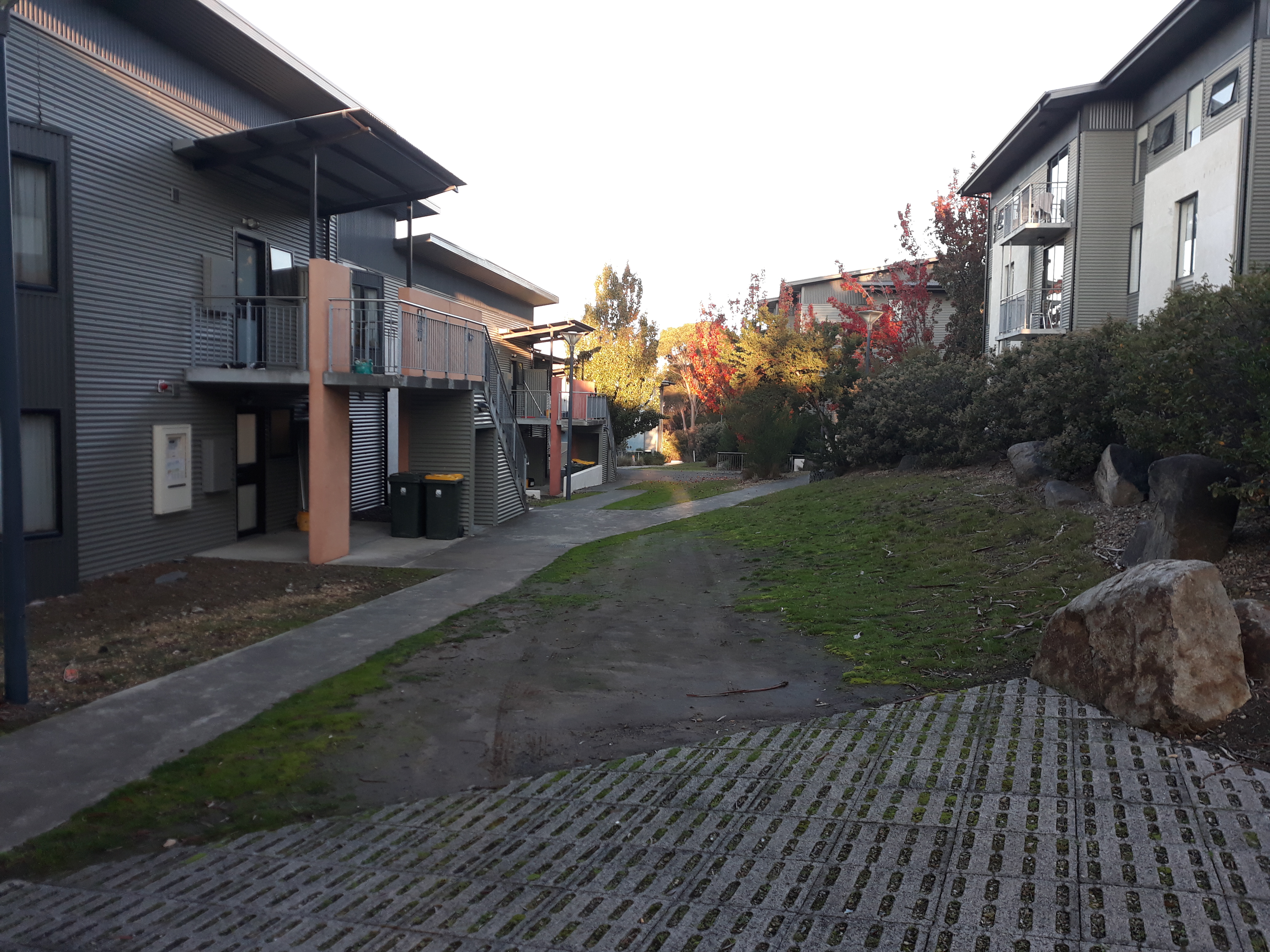 One section of the UTAS student accommodation on College Road, Sandy Bay. Here reside several hundred university students from across Tasmania, Australia and the world. At the beginning of the year residents would gather at social events, making new friends and reconnecting with old ones. But when the pandemic reached Tasmania the mood grew tense and students withdrew into their accommodation.