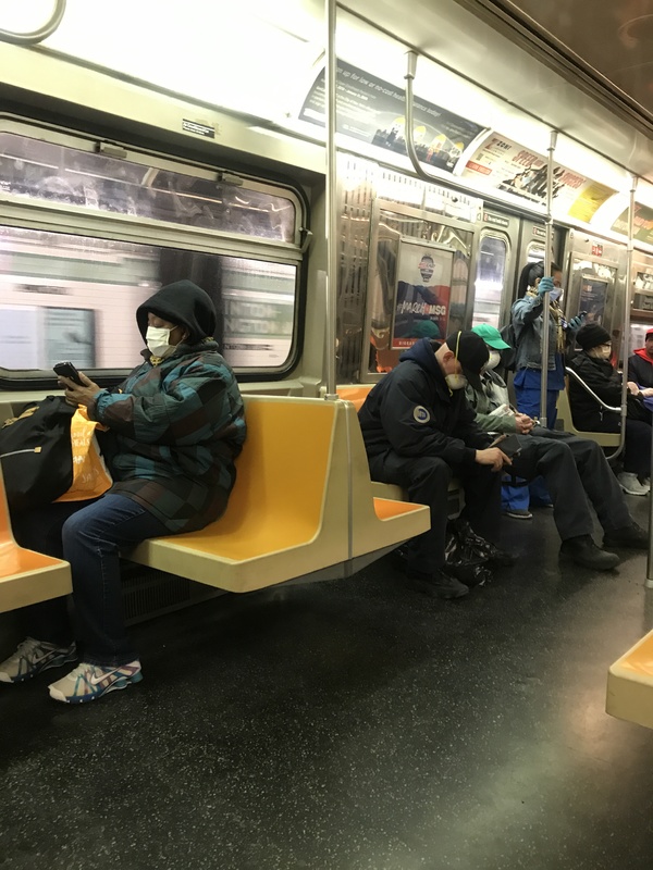 Subway riders and essential workers were masks on the train in Brooklyn, New York