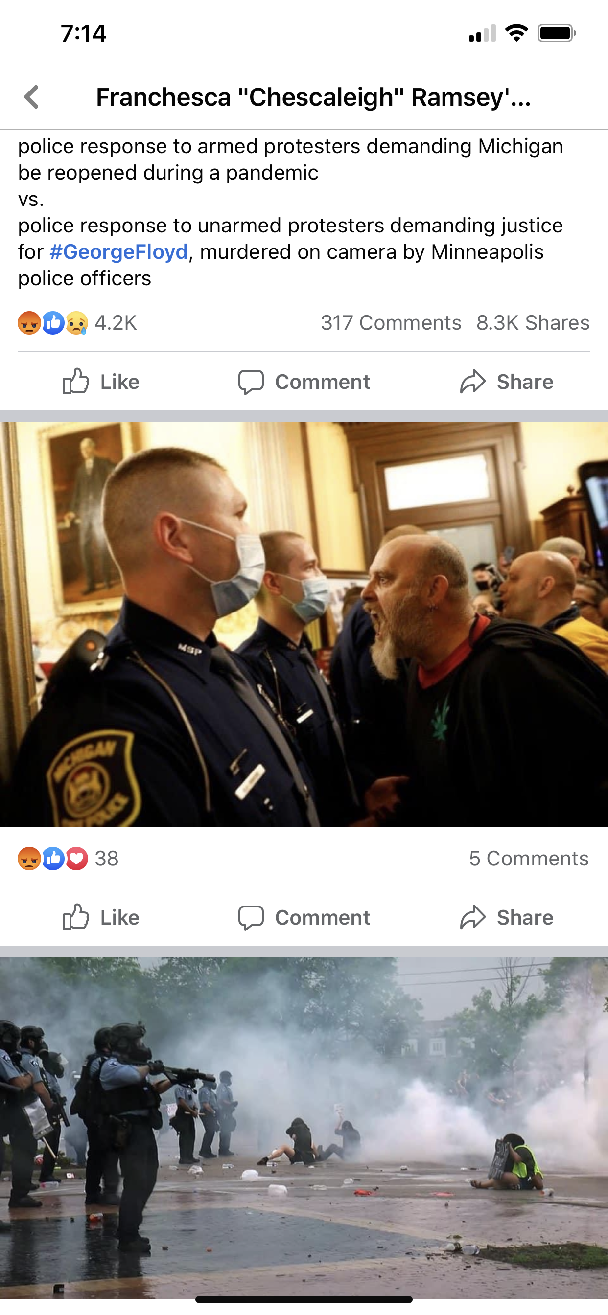 People took notice as the pandemic protesters (mostly white) screamed in officers faces with no harm coming to them. While black Americans meet with police brutality in staggering numbers.