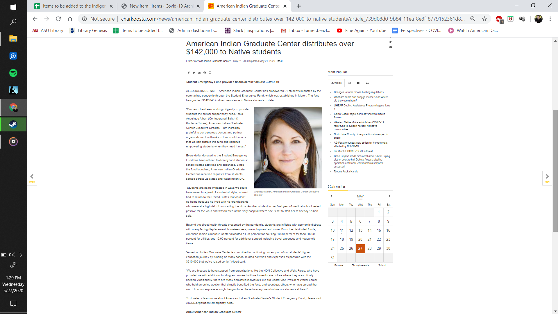 " — American Indian Graduate Center has empowered 91 students impacted by the coronavirus pandemic through the Student Emergency Fund, which was established in March. The fund has granted $142,843 in direct assistance to Native students to date."