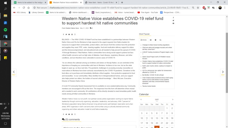 Western Native Voice establishes COVID-19 relief fund to support hardest hit native communities