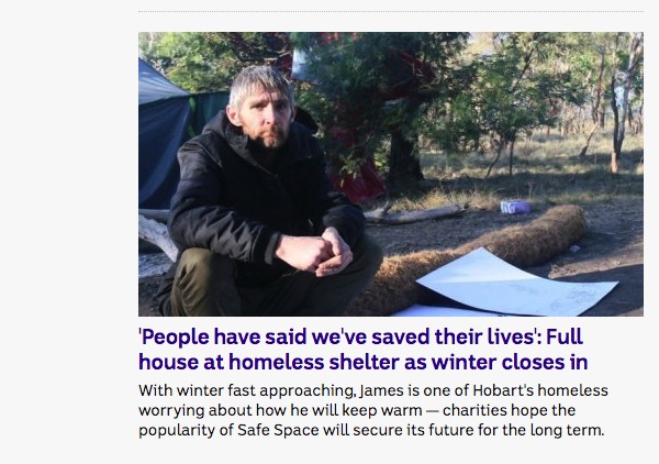 As Tasmanians, saturated in the flood of online media content, look on at the state of the world, feelings range from extreme anxiety, compassion with those in crisis centres, to smug repose (“at least we are not in that country”). This last response seems particularly rife today, but it struggles to conceal an inherent coldness which we don’t otherwise normally like to attribute to ourselves. Not only does this attitude overlook that fact that we have our own dead, or that the cost of life is of a value that far outpaces numerical value (comparing our figures with death-tolls in other places), we ignore those without home in the very place in which all of us are meant to dwell together.