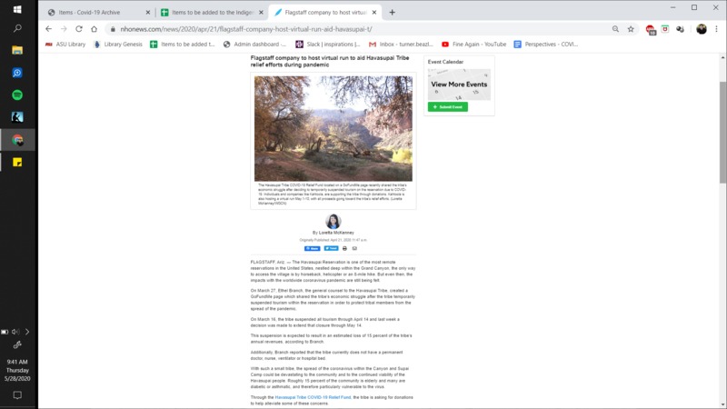 "The Havasupai Tribe COVID-19 Relief Fund located on a GoFundMe page recently shared the tribe’s economic struggle after deciding to temporarily suspended tourism on the reservation due to COVID-19. Individuals and companies like Kahtoola, are supporting the tribe through donations. Kahtoola is also hosting a virtual run May 1-10, with all proceeds going toward the tribe's relief efforts. (Loretta McKenney/WGCN)"