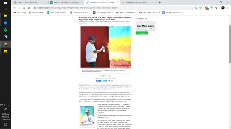 Pandemic hits artists, but Jerrel Singer continues to create art to promote hope on the Navajo reservation