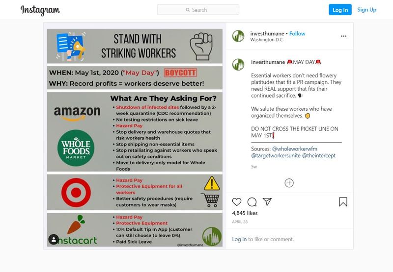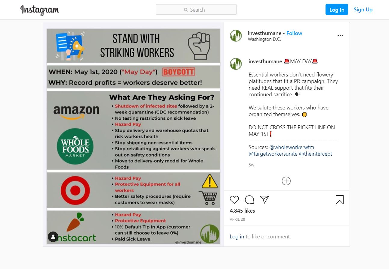 A digital poster outlining the demands of workers in the online shopping/delivery/grocery staging a one day strike to urge the public to boycott the companies involved on the day of the strike.