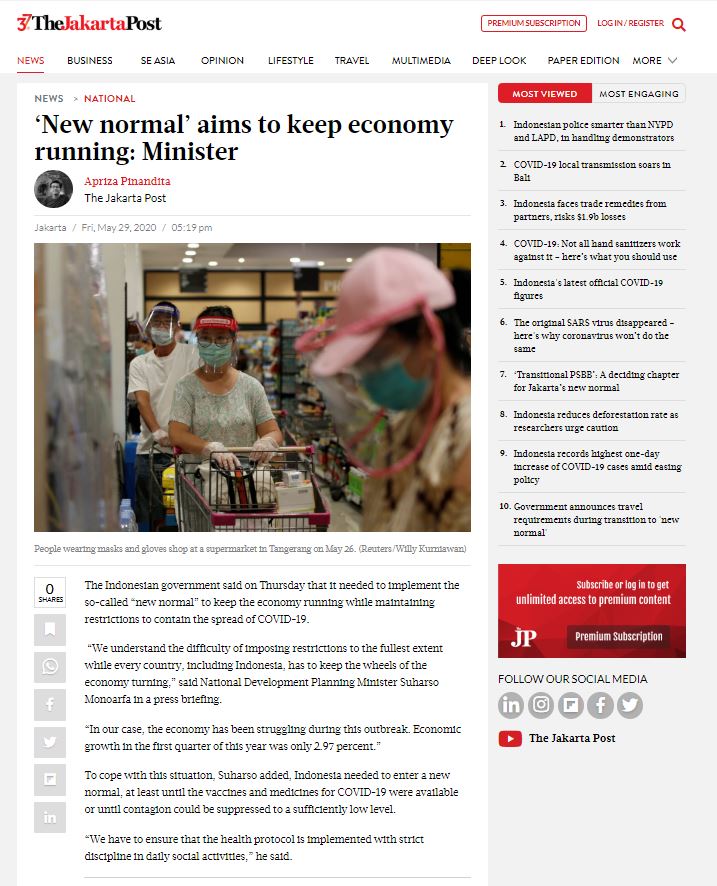* News about Indonesia government preparing the 'New Normal' in Indonesia in hopes to keep the economy running