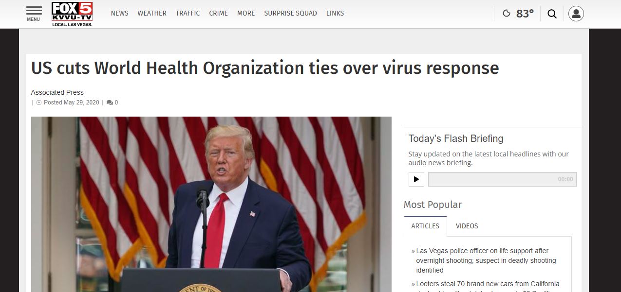 "President Donald Trump said Friday that the U.S. will be terminating its relationship with the World Health Organization, saying it had failed to adequately respond to the coronavirus because China has “total control” over the global organization." This is a step toward deflecting Trump's own failures. It is a failure to enact true leadership and important for future generations to note when remembering the loss of lives during 2020.