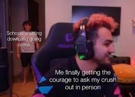 So before this whole global pandemic struck, my friend, I shall refer to him as Johnny. Johnny had a crush on this girl we'll refer to her as Emily, this is all happening during our junior year as of 2020. Anyways so Johnny and Emily worked on a particular project together most if not every school calls it the year book. So Johnny has a dilemma, he wants to ask Emily out, but he wants to keep things "professional" in the work place. And so being the great friend I was, I said to him, "Ask her out, what's the worse that could happen?" For about two weeks he holds off, talks to her, texts her, you know the usual. So the day he was going to ask her out was the day that the schools were shutting down for the pandemic. We were having shawarma, and Johnny was going to ask her out after our group meal. Unfortunately we get this email saying that schools are on lock down along with small businesses and other entertainment/activities. Unfortunately he didn't ever ask her out because of the lock down and barely even messages his crush. Honestly if the virus didn't hit Johnny might now be in a happy relationship, but unfortunately he isn't. I really feel for him, he mustered up all his courage to ask his crush out and the virus was like nope. Poor guy