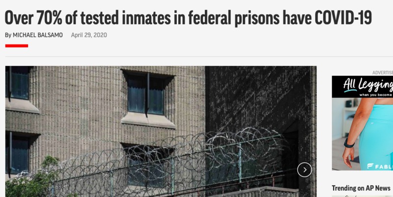 Over 70% of tested inmates in federal prisons have COVID-19