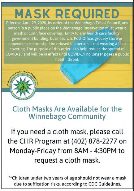 “The Winnebago Tribe of Nebraska, like all the other tribes across the na-tion, has been affected by the corona-virus. Social distancing restrictions has caused many changes within the community including the temporary closing of the Winnavegas Casino, the main resource for the Winnebago Tribe of Nebraska. Inevitably, this also forced the tribe to temporary furlough certain tribally funded positions…Unfortunately, the Winnebago Tribe of Nebraska, a government agency, is not eligible for the Paycheck Protection Program (PPP) “a loan designed to pro-vide a direct incentive for small busi-nesses to keep their workers on payroll” (sba.gov). Staying optimistic and proac-tive, the Winnebago Tribe of Nebraska has been taking steps to take care of the tribal members, community and its employees to the best of its ability…The Winnebago Tribe of Nebraska is waiting for a distribution from the US Department of Treasury. The Coronavi-rus Aid, Relief, and Economic Security (CARES) Act was passed by Congress and signed by President Trump which included an $8 billion allocation for all tribes to fund COVID-19 prevention, preparedness and response.”