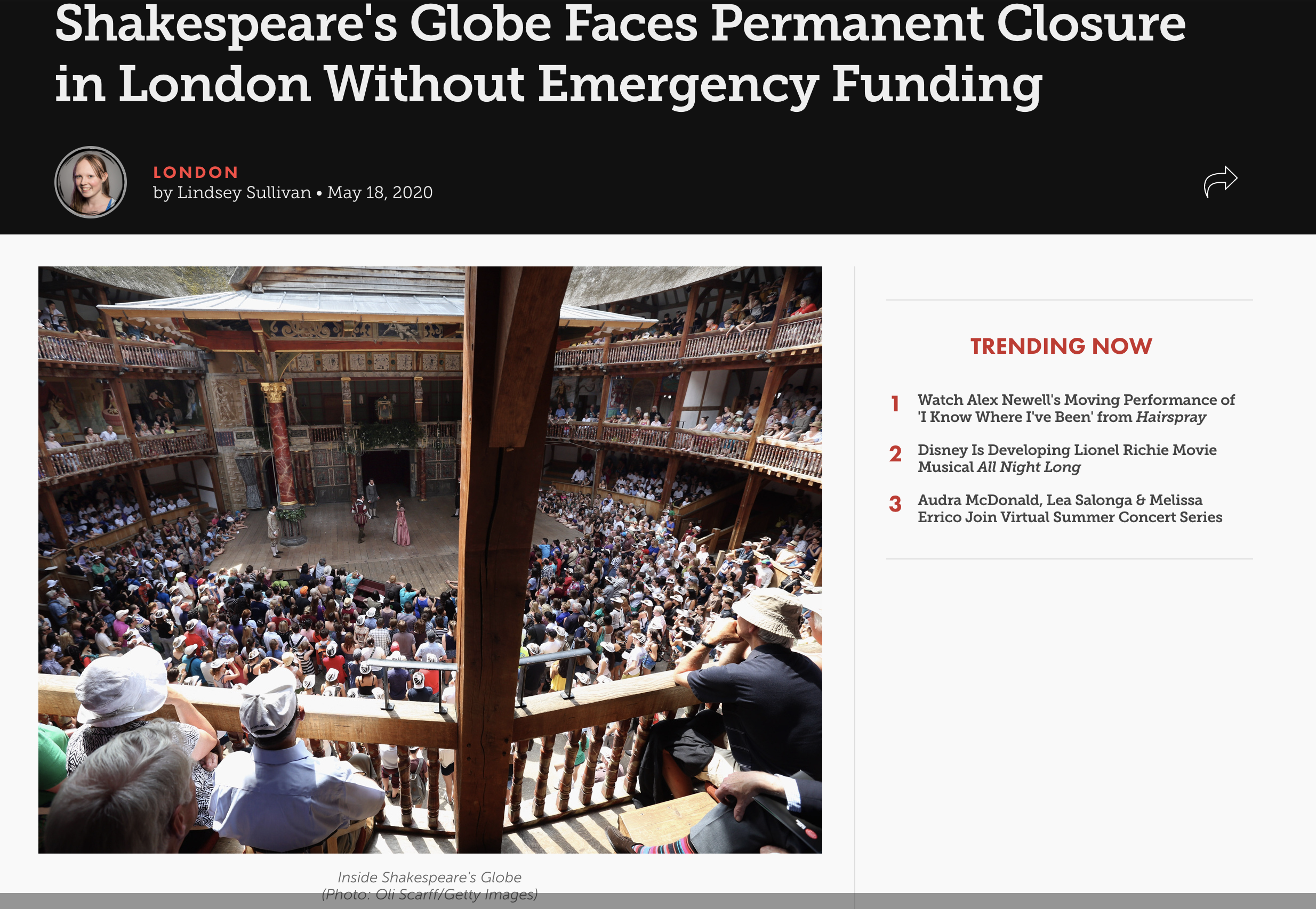 Shakespeare's Globe Faces Permanent Closure in London Without Emergency Funding