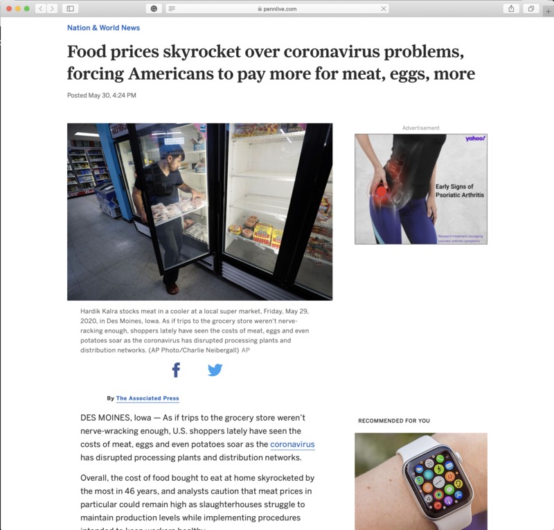 Starting in March when the pandemic started food prices began to go up. From issues with transportation to outbreaks of Covid-19 among slaughterhouse employees food costs are showing no sign of going down. Everyone will feel the pinch in time whether your a customer or a restaurant owner. According to the article, produce is the latest food item to see price increases. With so many people already stretching every penny, the rise in food costs will just add to the stress of many. Some prices will come down as demand returns to normal, but some items may not go down in price due to issues with supply chain or other factors. Submitted by Stephanie Berry, curatorial intern for Arizona State University, HST 580. #ASU #HST580