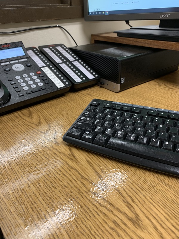 Q.T. Plus Virucidal Spray was distributed to school staff members before campus closures to help stop the spread of COVID-19. The spray, intended to kill the virus, left a long-lasting sticky residue that quickly deterred its usage among employees.