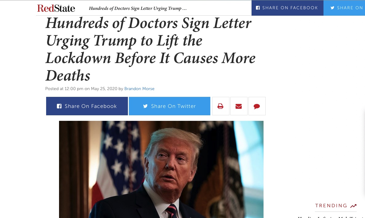 Hundreds of Doctors Sign Letter Urging Trump to Lift the Lockdown Before It Causes More Deaths