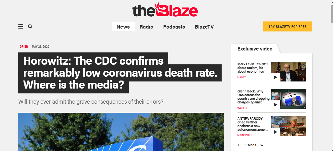 The CDC Confirms Remarkably Low Corona Virus Death Rate