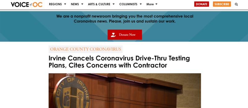 Though the total amount of CoVid-19 affected is still increasing in the United States, with the trend that many states are re-opening to a second-stage, City of Irvine (CA) is going to cancel its drive-through testing. Perhaps, the number, in the eyes of the city council, has been low lately and there should not be too much to do to accommodate and contain.