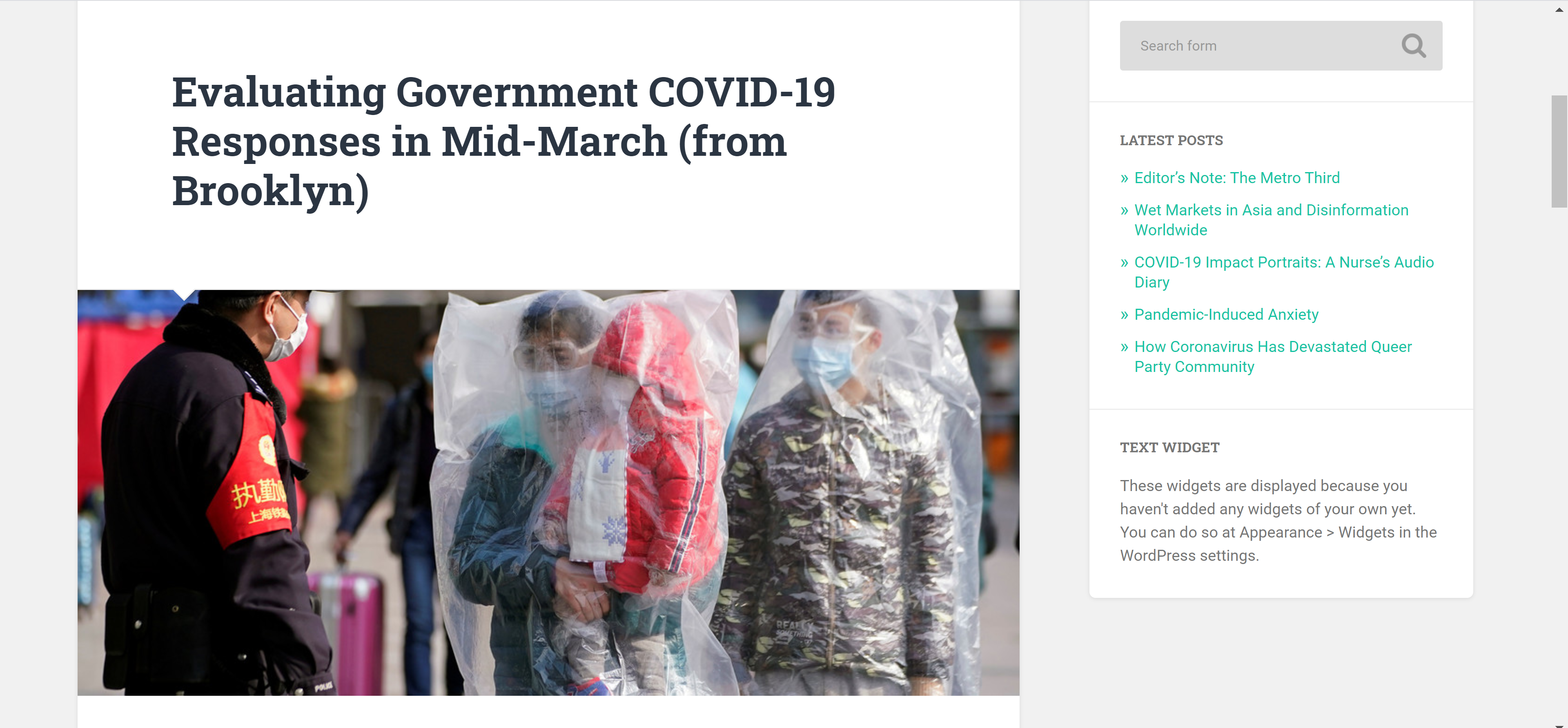 Evaluating Government COVID-19 Responses in Mid-March (from Brooklyn)