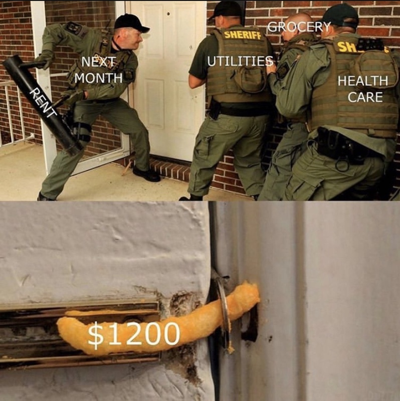 I have submitted 3 memes which highlight people's reaction to the pandemic. One of the memes shows what everyone expected from 2020 vs what they got which was police guarding toilet paper against people who were scared and started hoarding it. The second meme shows Darth Vader as the good guy as he is wearing a mask and listening to orders. This shows the redefinition of good vs bad citizen. The third meme shows the anxiety of people who are unable to pay rent and collecting more and more debt. With the government stimuli being too little to actually help, and the worst unemployment in history, people are feel attacked as shown in the meme.