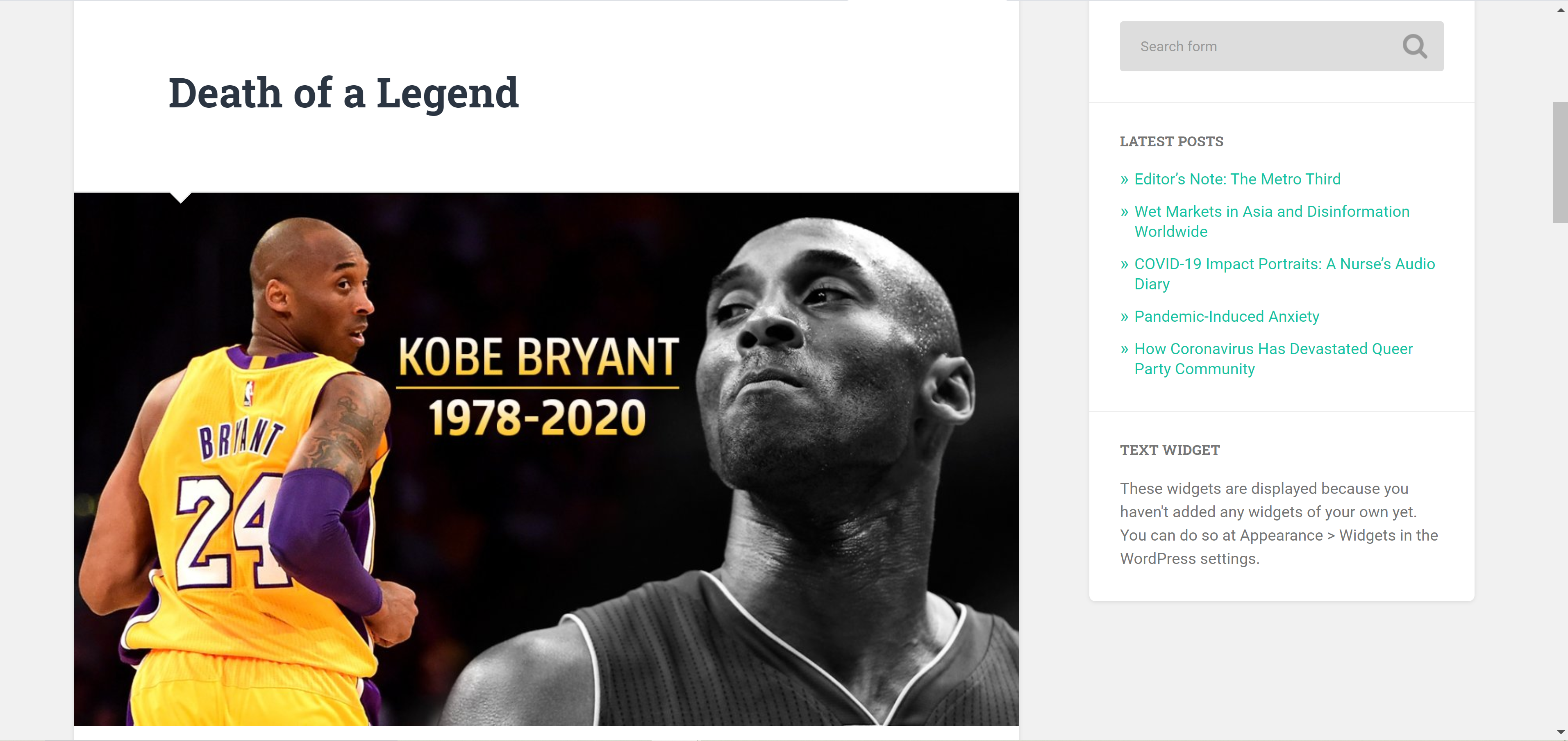 This article describes the legacy and impact of Kobe Bryant and was written by a senior journalism student following a beat developed and thought about in terms of the "local" in a journalism course at Pratt Institute that was upended by the pandemic.