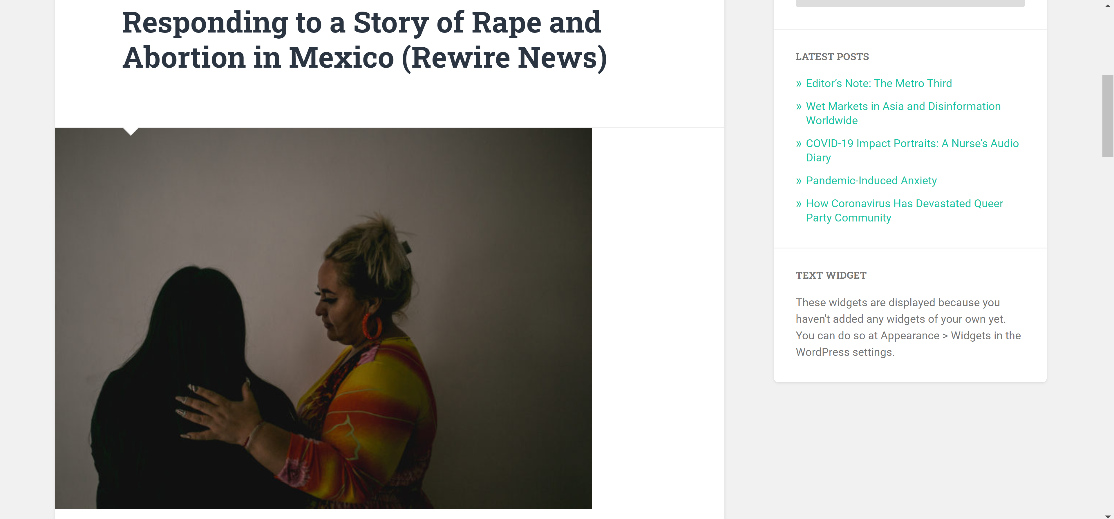 This article is responding to an article from Rewire News on a story of rape and abortion in Mexico, and was written by a senior journalism student following a beat developed and thought about in terms of the "local" in a journalism course at Pratt Institute that was upended by the pandemic.