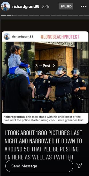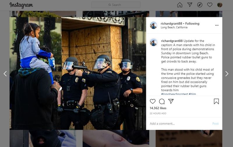 Child Looks Into Barrel of Rubber Bullet Gun During Protests in Long Beach, California