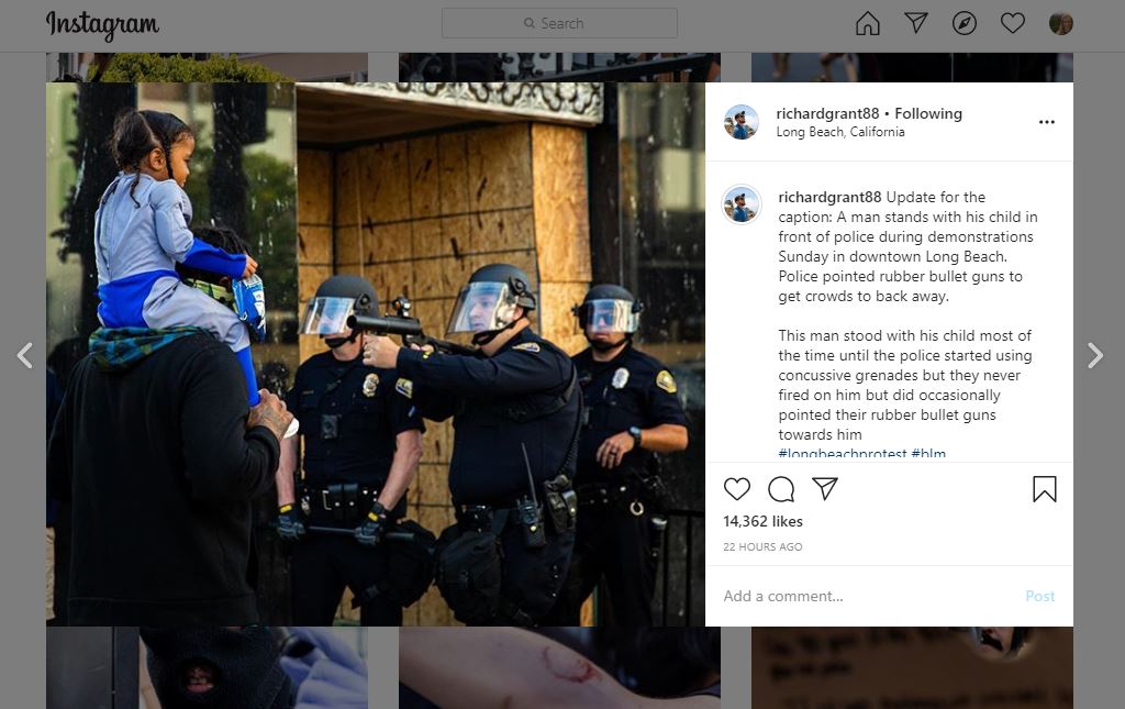 Following the death of George Floyd in Minneapolis, Minnesota on May 25, 2020, protests erupted across the nation. During protests in Long Beach, California, Richard Grant captured a striking image of a cop pointing a rubber bullet gun at a father with his child on his shoulders. Children across the United States today are experiencing the COVID-19 pandemic and a large scale civil rights movement. What short and long term impacts will these moments have on our children?