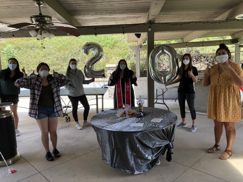 My friend graduated college during the Corona Virus quarantine. My other friends and I threw a surprise graduation celebration in her backyard, wearing masks and staying 6 feet apart as precautions.
