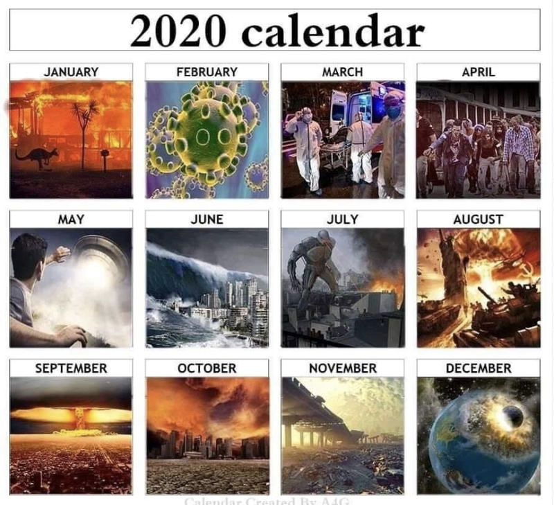 Ever since the end of last year, social media was hyping up 2020 to be the best year yest for a lot of us. Right from the start, we saw the rise of military tension world wide and the rise of WW3 memes. This happens the around the same time videos of Australia is shown being on fire for the last couple of weeks. The Calendar meme originates from mid March, right when scare for the pandemic was rising throughout the media. People start joking that the year is already canceled and how it's the end of the world basically. This calendar is a result of those memes about the end of the world. Obviously exaggerated but still genuinely funny. The Outfit meme is from the first day of June in the wake of protests across the country. One can see the transition from the first meme into the second.