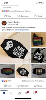 This is an ad that came across my newsfeed offering facemasks with protest quotes on them.It is important to show the impact of the Pandemic and while not stopping protests it is affecting how they are conducted and being used as a tool to represent these great causes.