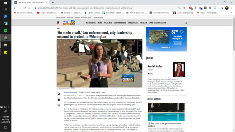Including the protests in Wilmington, as well as others in different cities, into this archive is important because these two events have never coincided at any time during recent history. There has been a pandemic of influenza during 1918-1919, and the Civil Rights Movement of the 1960s, but there has never been such a moment in history as this we are currently facing. The future implications and consequences of the pandemic and protests have yet to be determined. The only thing that is for sure right now is that we will be studying this moment in history for many years to come.