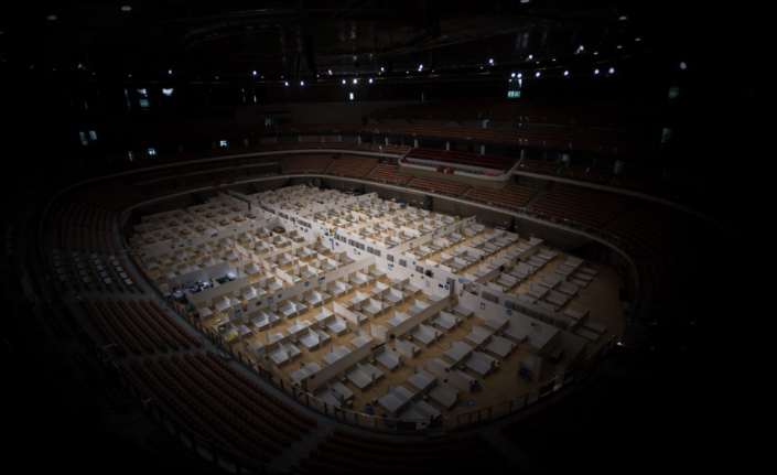 This is a photo of Fangcang Hospital in Wuhan, China. The hospital was originally a gym square and used to isolate patients during this pandemic. But this empty gym signals that China has beat the COVID-19 and patients in this hospital are all cure.