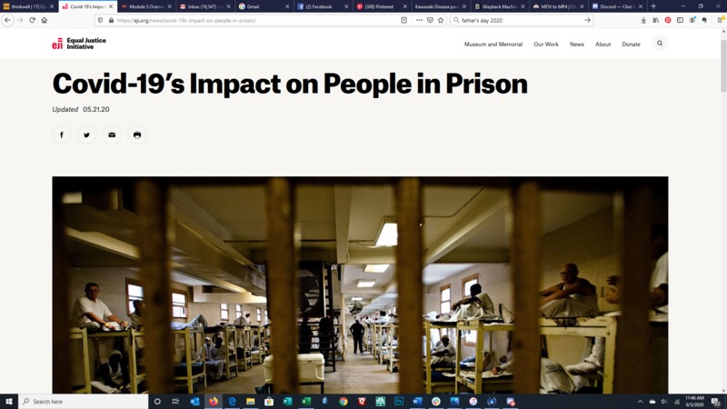 This article from the Equal Justice Initiative covers the unique concerns covid causes for incarcerated people. HST580, ASU