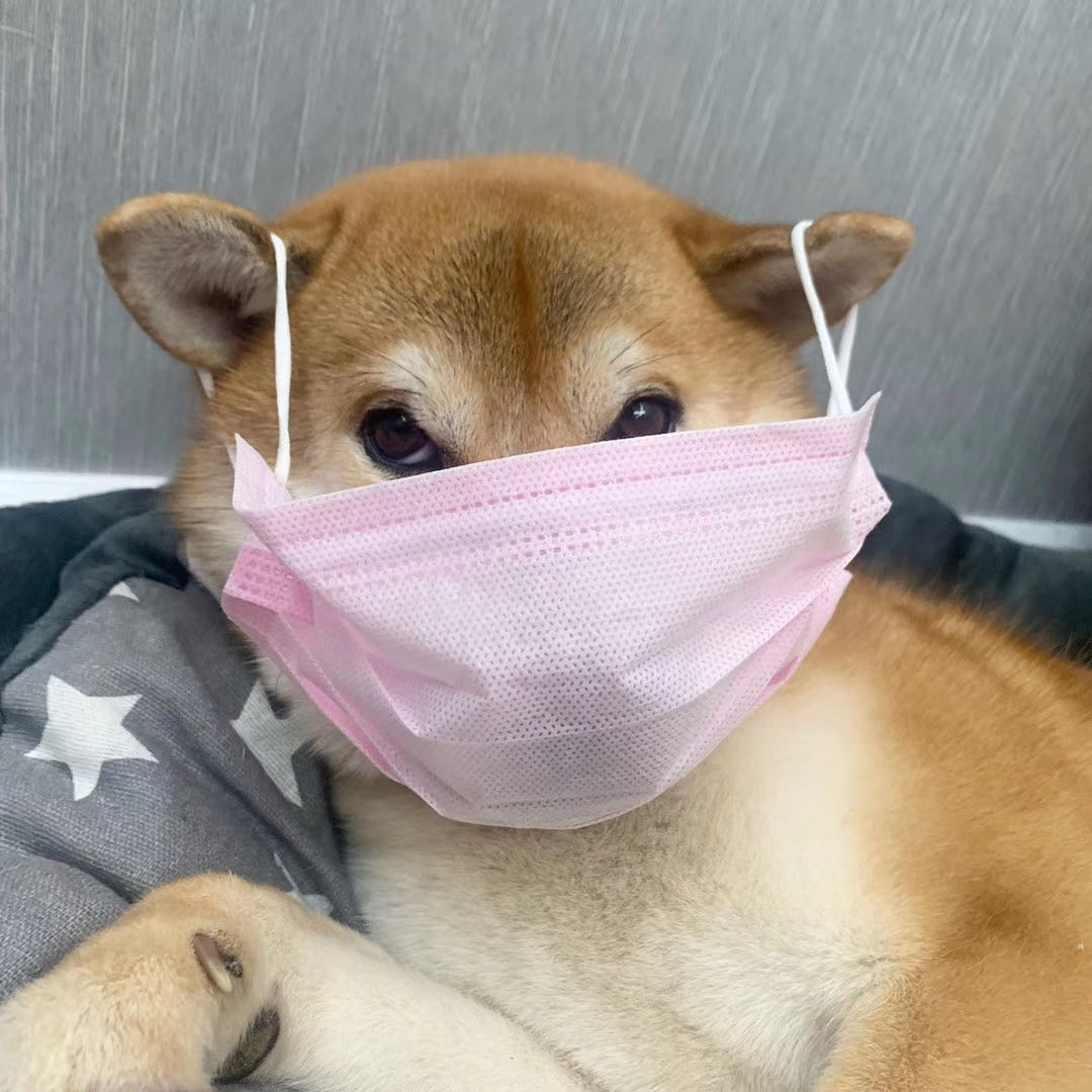 During the beginning of the pandemic, the Chinese government appealed people to wear facial masks everywhere. I put a facial mask on my dog for fun.
