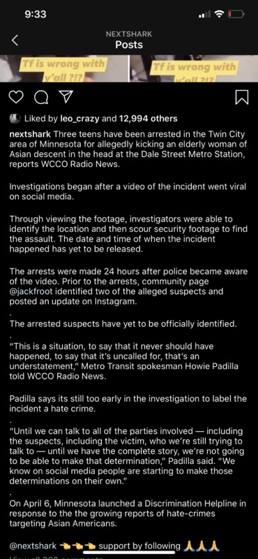 Screenshot of instagram post