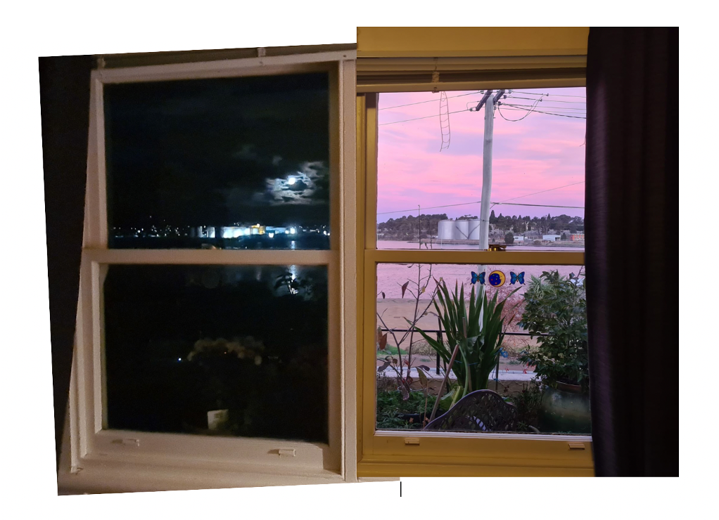 I am including this selection of two photos of my bedroom window, as this has been the dominant view and my sole saving grace throughout lockdown. The photo on the left was taken in my first week of lockdown on the twenty third of March, which was the first week that I began to stay at home as I am asthmatic and was very concerned about my own health making me more vulnerable. The second photo was taken on the first of June, and marks ten weeks since my own ‘lockdown’ began, I have somewhat lost track of the various stages of lightening of restrictions as I was still mostly avoiding going out up until the point when the second photo was taken. In many ways my asthma and anxiety made this experience pretty traumatising, I stopped walking my dog because I people kept patting her and I had too much anxiety about the conflict of constantly asking people not too, and I was worried about the contact risk to myself from people touching my dog. After the rate of community transmission stabilised, I felt safer going out to places, but then I found the secondary anxiety of people behaving in rude and hostile ways towards me in public due to my obvious coughing or wheezing from asthma after I had an obvious asthma attack in Officeworks. My isolation has thus been pretty intense and long lasting compared to some others and combined with anxiety has induced an intense sensation of feeling trapped in my bedroom. The access to sunlight and fresh air through this window, as well as my beautiful view has been a literal visual lifeline, I found myself taking lots of photos of the window and my view. In many ways I feel like this has made me far more attentive than I have ever had the opportunity to be to the changes between night and day, and the slow seasonal change into winter.